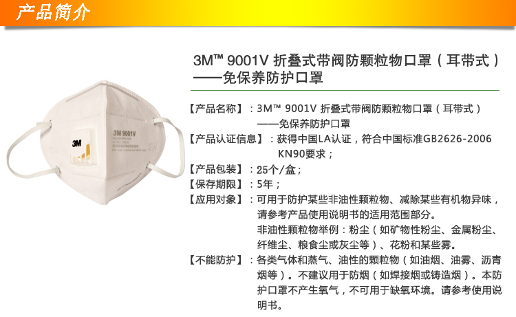 3M9061防尘口罩 防雾霾 KN90过滤防粉尘 耳戴头戴两种 防病毒口罩