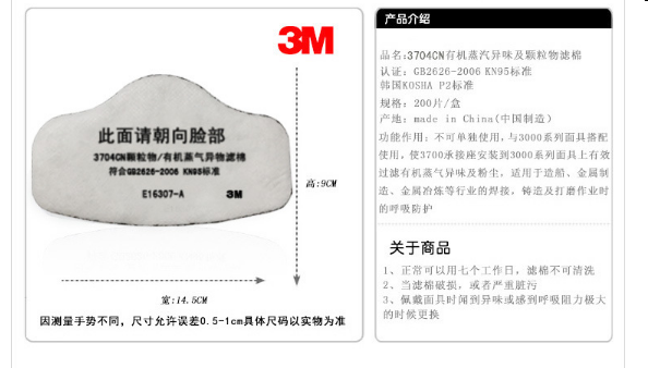 2078滤棉 有机气体 酸性气体防护滤棉 P95过滤棉